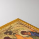 Antikes Andrei Rublev-Kunstwerk/Ikone mit dem Vater, dem Sohn und dem Heiligen Geist, die an einem Tisch sitzen. Die Bilder scheinen Engelsflügel zu haben.