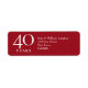 40. BREITE JAHRESRUBY-ADRESSLABEL. Jubiläumsdatum, Name und Anschrift Details Set in elegantem Weiß auf rubinrotem Hintergrund.