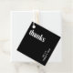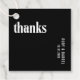Moderne Gastgeschenk Hochzeit mit einem einfachen und minimalen Design mit "Dank" in fett weißer Typografie auf schwarzem Hintergrund. Die Farben können in alle Farben geändert werden, die Sie im Designbearbeitungstool auswählen. Die Rückseite hat Ihre personalisierte Nachricht. Diese zeitgenössischen Gastgeschenk Hochzeiten sind ideal für eine Hochzeit mit Gothic oder Halbzeitthemen.