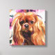 Style vintage floral 'Ruby' art cavalier chien imprimé dans une couleur douce douce douce douce. 12 x 12 pouces