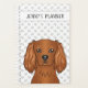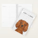 Dessin original de Destei illustrant une jolie couleur de rubis, la tête du chien de la race Cavalier King Charles Spaniel. Il y a aussi une zone de texte personnalisable pour le texte personnalisé. L'arrière - plan a un motif gris clair d'empreintes de pattes de chien.