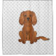 Desteis originelle Cartoon Illustration einer niedlichen rubinfarbenen Cavalier King Charles Spaniel züchten Hund, der sitzt. Der Hintergrund weist ein Muster grauer Hundepfoten auf.