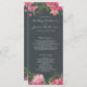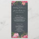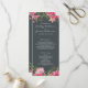 Elegantes und modernes rubinrosafarbenes Hochzeitsprogramm mit bemalten Aquarellfarben-Blume in Rosa und Pfirsich und üppig grünem Blattwerk vor einem schicken, schwarzen Hintergrund. Fügen Sie einfach Ihre Hochzeitsdetails hinzu. Wenn Sie Hilfe oder passende Produkte benötigen, kontaktieren Sie uns bitte über unseren Shop. Wir helfen Ihnen gerne, Ihre Hochzeit zum schönsten Tag zu machen!