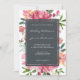 Elegante Hochzeitseinladung mit einem Blumenrosa-Rosa-Toronendesign, mit bemalten Aquarellfarben-Blume in rubinrosa und frischem grünem Blattwerk. Für die Rückseite der Karte wird die Farbe schwarzer Wald verwendet, ein schick off-schwarz. Fügen Sie einfach Ihre Hochzeitsdetails hinzu. Wenn Sie Hilfe oder passende Produkte benötigen, kontaktieren Sie uns bitte über unseren Shop. Wir helfen Ihnen gerne, Ihre Hochzeit zum schönsten Tag zu machen!