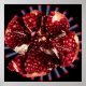 Phantastisch reif, rubinrot, frisch geschnittene Garnelenfrüchte auf schwarzem Hintergrund.