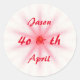 Die Malerei eines roten und weißen Minzwirls wurde in ein Kaleidoskop-Muster umgewandelt und auf Sonderaufklebern gedruckt. Es gibt Platzhalter für Namen und mehr, damit Sie personalisieren können. Ruby ist das traditionelle und moderne Geschenk zum 40. Hochzeitstag.