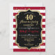 Ruby Red 40. Hochzeitstag Party Einladung. Elegante rote, Schwarz-weiße Einladungskarte mit Imitat Glitzer Gold. Mit stilvollen Streifen und Skript-Schriftart. Ideal für ein 40-jähriges Jubiläum.