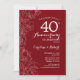 Ruby Red Floral 40. Hochzeit Jubiläum Party Einladung. Minimalistisches modernes Design mit botanischen Kontur Zeichnungen Akzente und Typografie Drehbuch Schriftart. Elegante Einladungskarte perfekt für ein stilvolles Fest. Kann auf jedes Jahr der Ehe angepasst werden. Gedruckte Zazzle Einladungen oder Sofortdownload digitalen druckbaren Vorlage.