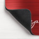 This trendy mouse pad feature a ruby red falsch brushed metal foil background. Personalize it with your name in white handwriting-style brush script.