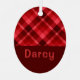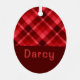 Ein mit Monogramm ovales Weihnachtsbaumschmuck aus Metall mit einem schönen diagonalen karierten Muster in rubinrot. Erstellen Sie das passende Geschenk, indem Sie auf die Schaltfläche "personalisiert" klicken, um einen Namen oder eine benutzerdefinierte Nachricht im vorgegebenen Vorlagenfeld hinzuzufügen. Wählen Sie den Link "Bearbeiten mit dem Entwurfstool", um den Schriftart, die Textgröße und vieles mehr zu ändern.