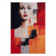 Abstraktes Portrait mit lebhaften Rot-, Orange- und Schwarzwingtönen. Geometrische Linien kontrastieren mit der menschlichen Figur und schaffen eine dynamische und intensive Komposition.