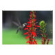 Ruby-Throated Hummingbird bei einer Roten Lobelia-Pflanze für etwas Nahrung.