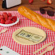 Ein kleines Retro-Radiowecker mit digitalem Display. Dieses Design wirkt bei diesen Paper-Tellern sehr effektiv
