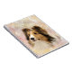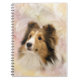 Sheltie oder shetland sheepdog face auf einem weichen pastellfarbenen hintergrundhundelangen Fan mit Spiralheft
