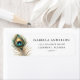 Stilvolle Pfauenfedern-Rücksendeadressen-Aufkleber mit einer wasserfarbenen Pfauenfeder in Blau, Grün und Gold.