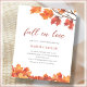 Moderne Einladungen aus Brautparty mit einem Baumzweig im Herbst und Herbstblättern in Orangen-, Rost-, Gelb- und Brauntönen auf weißem Hintergrund. Dies ist eine erschwingliche Einladung auf Papier. Sie sind herzlich eingeladen, unseren Shop Peony Designs zu besuchen, um diese Einladung auf Karte oder digital zu erwerben.