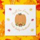 Herbstsonnenblume und Blumenmuster, orangefarbener Kürbis und Rahmen von Ahorn-Blätter: Herbstduschgeschenke in Liebe
