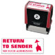 Die Briefmarke ist so gestaltet, dass sie mit den Meldungen "RÜCKKEHR ZUM SENDER" und "KEINE SOLCHE ADDRESSEE" sowie mit einem Pfeilsymbol versehen ist. Es kann verwendet werden, um anzugeben, dass die empfangene Post an die falsche Adresse geliefert wurde oder der Empfänger unbekannt ist und an den Absender zurückgeschickt werden sollte.