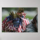 Der Rucksack eines Soldaten der Armee überflutet mit kleinen amerikanischen Flaggen, die mit Arlington National C ausgezeichnet wurden.