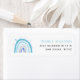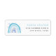 Niedliches und modernes Rücksendelabel mit handgezeichneter Abbildung eines blauen Regenbogens mit Sternen. Dieses Design passt zur Babydusche-Kollektion mit dem gleichen Regenbogendesign.