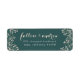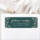 Diese eleganten Rücksendeadressen-Aufkleber mit Blumen und cremefarbenem Babyatmen, die Ihre Rücksendeadresse umrahmen, Set auf einem schmuckfarbenen, waldgrünen Hintergrund, passen zu unserer Kollektion Delicate Frame Einladung in Jasper Green.