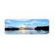 Schöner Ozeansee Sonnenuntergang mit blauem Himmel, blaues Wasser, Wellen, weiße Wolken, gelbe Sonne, lila Umgebung