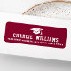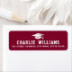 Burgundy oder benutzerdefinierte Farbe Abschluss Rücksendeadressen-Aufkleber mit einem Graduierungspapier mit Ihrem Namen unten in einer Uni Sportart Schriftart. Weißer oder benutzerdefinierter Farbtext auf einem bordeauxfarbenen oder benutzerdefinierten Hintergrund.
