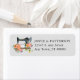 Auf diesem Adressetikett ist eine alte Nähmaschine von Blumensträußen in pfirsichfarbenen, orangen und gelben Tönen umgeben. Ihr eigener Text ist rechts in dunkelgrau. Ein schönes Retro-Bild, das besonders für jeden geeignet ist, der Lieben zu nähen!
