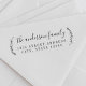 Die Briefmarke aus Rücksendeadresse mit personalisiertem Familiennamen in moderner Handkalligraphie mit eleganten botanischen Kranelementen.