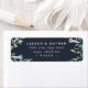 Diese eleganten botanischen Rücksendeadressen-Aufkleber passen zu unserer Hochzeitskollektion im Winter Sage und zeichnen sich durch moderne, weiße Schriftzüge auf marineblau-blauem Hintergrund aus, die von skizziertem Wintergrün in Grautönen und Weihrauchgrün flankiert wird.