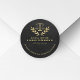 Luxuriöser, eleganter Umschlag Aufkleber-Rundaufkleber für einen Anwalt bei Rechtsanwalt Rechtsberater mit klassischem Logo-Imitat goldene Maßstäbe der Gerechtigkeit und ein Lorbeerkranz auf einem stilvollen schwarzen Lederlook (PRINTED) Hintergrund.