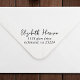 Rücksendeadresse Briefmarke mit Ihrem Namen in einem signaturähnlichen Skript und Ihrer Adresse in einfacher, moderner kursiver Typografie.