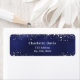 Ein tiefblauer Hintergrund, die blaue Farbe ist ungleichmäßig. Dekoriert mit Imitaten Glitzer Staub. Personalisieren Sie Ihren Namen und Ihre Adresse.Weiße Buchstaben.