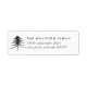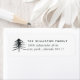 Ein einfaches und modernes Rücksendelabel mit Name und Adresse in sanften schwarzen Schriftzeichen und einer handgezeichneten Kiefernbilderkennung in Single. Entworfen, um mit unserer Ferienkollektion Sketched Pines zu koordinieren.