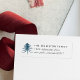 Ein einfaches und modernes Rücksendelabel mit Name und Adresse in sanften schwarzen Schriftzeichen und einer handgezeichneten Kiefernbilderkennung in Single. Entworfen, um mit unserer Ferienkollektion Sketched Pines zu koordinieren.