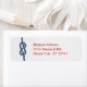 Dieses moderne Adressetikett eignet sich ideal für Hochzeiten oder Veranstaltungen mit einem Thema aus dem Wassersport, dem Ozean oder dem Strand. Es zeigt einen nautischen Knoten auf dem verlassen auf einem hellen weißen Holzgewebe auf dem Hintergrund. Die Farbe Rot und Blau ergänzt das Wassersportzentrum.