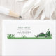 Ein Rücksendeadresse-Label für Rasenpflege- und Gartendienstleistungen, um Ihre Briefe zu ergänzen. Es enthält eine Abbildung mit Gras, Rasenmäher und anpassbaren Texten.
