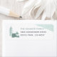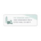 Ein gemütliches Rückkehradressen-Label-Design mit niedlichen Bindevibes und einer schneebedeckten Weihnachtsdörfsszene. Personalisieren Sie Ihre Daten mit Ihrem Familiennamen und Ihrer Adresse.