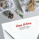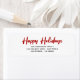 "White Red Happy Holidays Brush Rücksendeadressen-Aufklebers" bietet einen feinen, auffälligen, roten "Happy Holidays" modernen, handgeschriebenen Bürstenpinsel-Schriftart auf weißem Hintergrund, der sich ideal eignet, um Ihren Urlaubspost eine festliche Touch hinzuzufügen.
