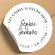 Ein einfaches, stilvolles Retourenlabel in einem zeitgenössischen, handgeschriebenen Script-Schriftart im modernen Minialismus auf einem weißen Hintergrund mit einem einfachen Punktsymbol. Das perfekte Mailing-Accessoire oder Umschlag Aufkleber, das leicht mit Ihrem Namen und Ihrer Adresse für ein freundliches Design personalisiert werden kann!