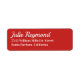 Ihr Name und Ihre Adresse sind leicht personalisiert... in einem lebendigen roten Etikett mit Text, der mit dem links übereinstimmt