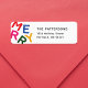 Erleben Sie eine Welt des minimalistischen Charmes und der pulsierenden Freude mit diesem reizvollen Urlaubsdesign, das Ihren Familiennamen und Ihre Adresse mit farbenfrohen, kühnen Briefen verbindet, die das Wort "Merry" mit spielerischer Typografie ausdrücken.