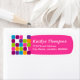 © 2010 Sozialite Designs. Farbenfrohe Rücksendeadressen-Aufkleber für die Mustergestaltung, die für Sie individuell gestaltet werden können. Der Stil des Schriftartes kann sich ändern oder dieses Bild durch das eigene ersetzen. Brauchen Sie Hilfe bei der Anpassung? Zögern Sie nicht, mich zu kontaktieren.
