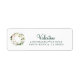 Weiße Blumengrün Aquarellkranz, Rücksendetikett. Elegantes Typografie-Design mit smaragdgrüner Schrift und mutigen Schriftart.