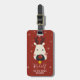 Dieses weihnachtliche Gepäcksschild zeigt ein lustiges Cartoon-Bild von Rudolf, dem Rotnasen-Rentier, auf einem roten Hintergrund mit weißen Schneeflocken.