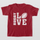 Rugby Liebe, Rugby Shirt. Dieses modische Rugby-Top ist ideal für Rugby-Spieler und alle, die Rugby-Lieben machen! Auf der Vorderseite steht der Slogan: RUGBY LIEBE in großen, fett weißen Buchstaben mit einer Rugbykugel, die als Buchstabe O dient. Dieses stilvolle Rugby-Shirt eignet sich hervorragend für Rugby-Spieler und ist ein tolles Rugby-Motiv, das jeder Rugby-Spieler Liebe bekommt! Mehr Sportthemen Shirts und Geschenke im Angebot!