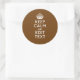 Ruhe behalten und den Text auf braun halten Runder Aufkleber