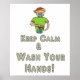 Keep Calm and Wash Your Hands design feature the advice message and a graphic of a sensitive person washing their hands - stay calm and practice good hygiene!