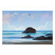 Ruhe, friedliche Landschaft mit weichen Wolken und einem Sandstrand.