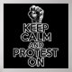 Protest Spaß mit dem Internet-Meme "behalt Ruhe". Symbol des Protests für die erhabene Faust und den Slogan "Behalt Calm and Protest On"